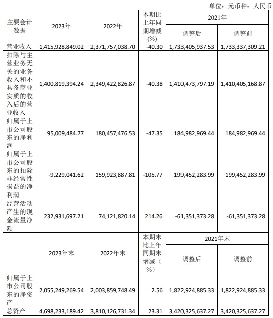 中國粉體網訊 報告期內,公司合并報表實現營業收入14.16億元,較上年同期下降40.30%,實現歸屬于上市公司股東的凈利潤0.95億元,較上年同期下降47.35%。