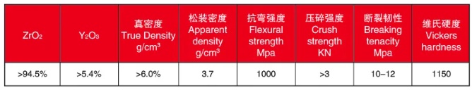 彩色氧化鋯粉體的典型指標為:3Y-PSZ≥95% 色素成分≤5% 典型比重≥5.85g/cm3 ,公司目前的彩色氧化鋯粉有干壓造粒粉和干燥粉,可以滿足客戶干壓、等靜壓、注射、流延等不同成型工藝的需求。