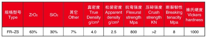 本公司所產韌化硅酸鋯(ZS)珠具有:比重適中合理、產品圓度好、規格尺寸誤差小,表面光滑、 耐沖擊、磨耗低、韌性好等特點。是研磨低比重和低粘度納米材料的理想選擇之一。