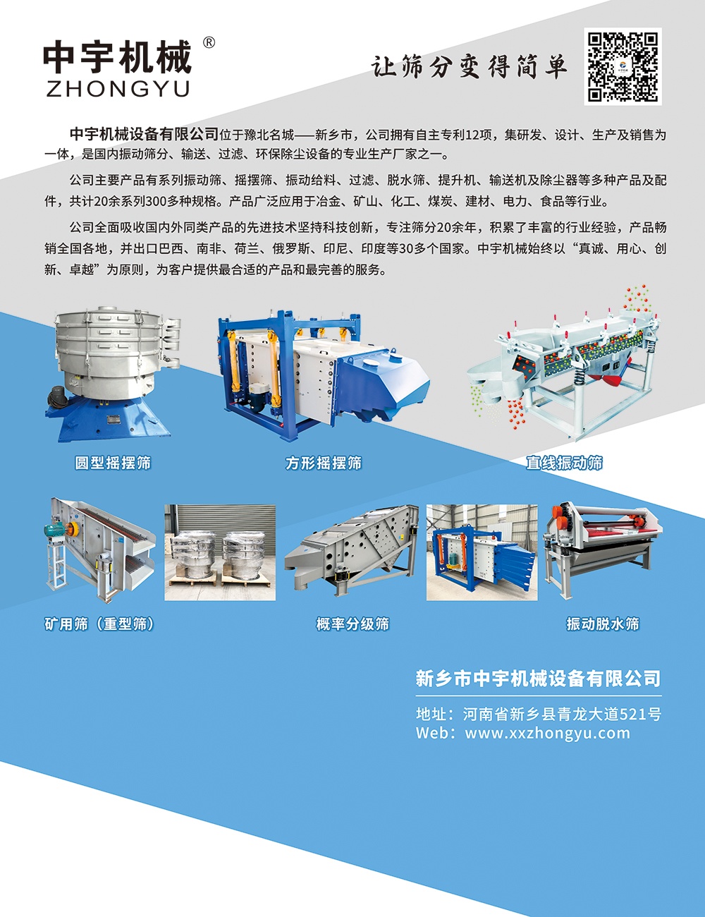 公司主要產品有系列振動篩分設備、振動給料、過濾、脫水設備、系列提升機、輸送機及除塵器等多種產品及配件,共計20余系列300多種規格。產品廣泛應用于冶金、礦山、化工、煤炭、建材、電力、食品等行業。