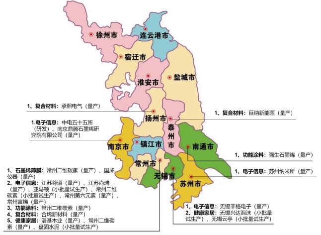 “中國石墨看江蘇,江蘇石墨看常州”,江蘇省是國內最早進行石墨烯熱應用產業化的省份,初步形成了以常州為核心,無錫、南京、南通、泰州、蘇州等相關地區均有石墨烯熱應用產業布局,打造了集石墨烯熱應用產業技術研發、創業孵化、企業培育、技術服務等于一體的產業體系。