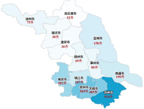 江蘇省石墨烯熱應用產業專利申請公開數量分布(圖源:石墨烯熱應用產業專利導航報告)