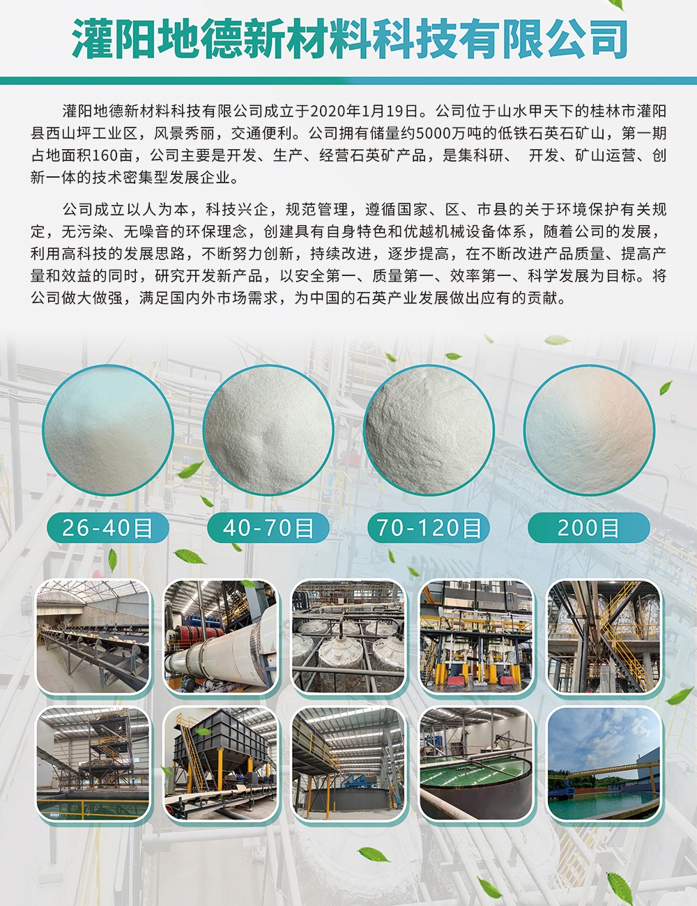 由中國粉體網主辦的“2024第四屆全國板材用石英砂供需洽談會”將于5月23日在山東臨沂舉辦,灌陽地德新材料科技有限公司邀您一同參加。
