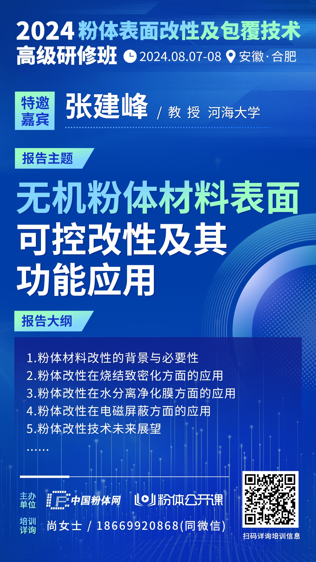 由于粉體表面的改性目的、改性工藝以及改性效果評價方法等有很大不同。特此,中國粉體網定于2024年8月7-8號在安徽·合肥組織召開2024第五屆粉體表面改性及包覆技術高級研修班,邀請行業專家學者一起面對面交流探討。