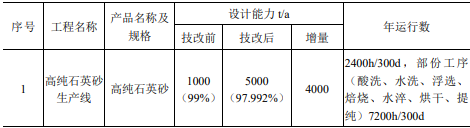東海縣聯(lián)誠光伏石英有限公司年產(chǎn)5000噸高純石英砂技改項目,通過國內(nèi)新購置反應(yīng)釜、浮選機、變壓器等國產(chǎn)設(shè)備,同時對公用工程進行適應(yīng)性技術(shù)改造。項目采用石英石→水洗→粗破→焙燒→水淬→粉碎→篩分→磁選→酸洗(在反應(yīng)釜中酸洗)→水洗→浮選→水洗→烘干→磁選→提純→成品等生產(chǎn)工藝。項目建成后可形成年產(chǎn)5000噸高純石英砂的生產(chǎn)能力。