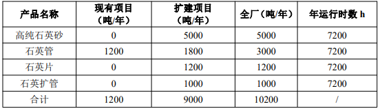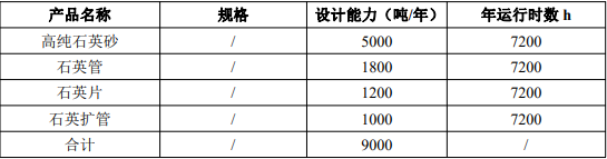 擬建項目高純石英砂工藝流程:石英礦石-粗破碎-初選-清洗-焙燒水淬-余溫干燥-細破碎-篩分-酸洗-浮選-清洗-烘干-磁選-高溫氯化提純-檢測包裝;擬建項目石英管、石英片工藝流程:高純石英粉-高溫烘干-高磁-投爐-熔融-牽引-成型;擬建項目石英熱加工工藝流程:選管(石英管)-封底-切割-清洗(氫氟酸)-開孔-打磨-熱加工成型-焊接-退火-噴砂-清洗-檢驗-包裝。建成后可形成年產5000噸高純石英秒、4000噸石英管、石英片、石英擴管的生產能力。