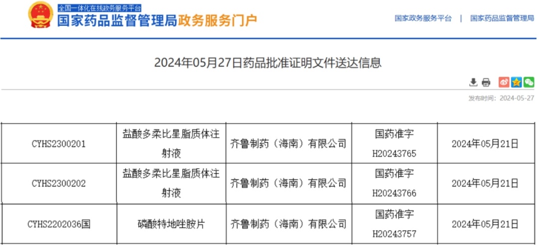 中國粉體網訊 5月27日,據NMPA官網公示,齊魯制藥提交的2款仿制化藥鹽酸多柔比星脂質體注射液(賽貝澤®)和磷酸特地唑胺片同日獲批上市并視同過評。據藥融云數據統計,今年齊魯制藥有13個品種過評。