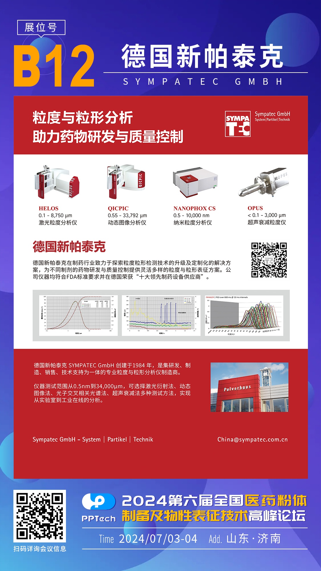 從第六屆全國醫藥粉體制備及物性表征技術高峰論壇組委會獲悉,本屆會議將于2024年7月3-4日在濟南舉辦。德國新帕泰克有限公司作為參展單位邀請您共同出席。