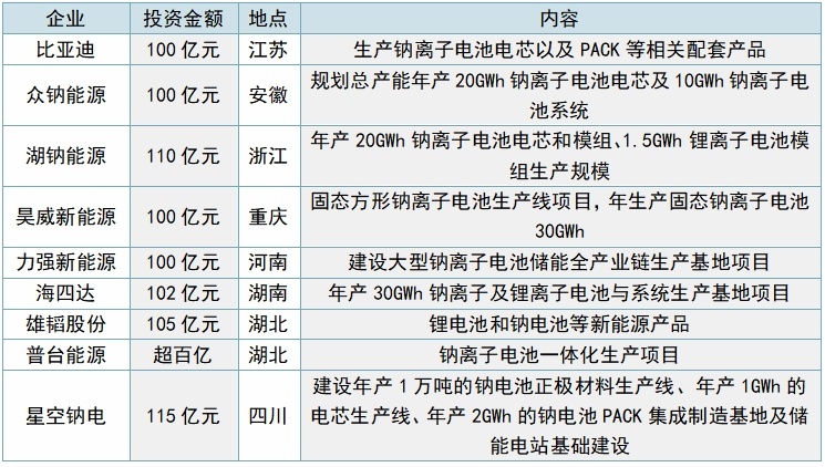 其中,比亞迪、眾鈉能源、湖鈉能源、星空鈉電等已開工建設。