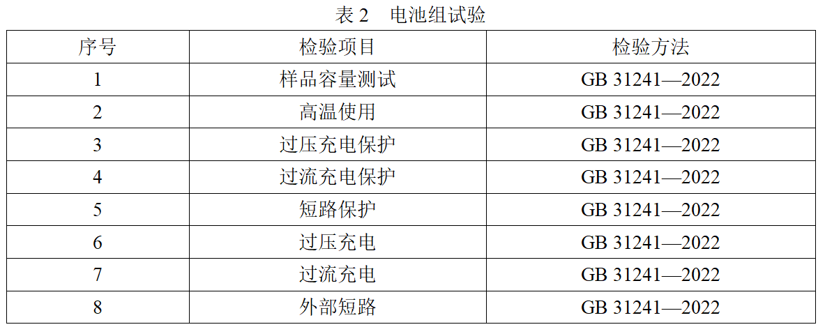 具體抽樣要求為:電池每批次產(chǎn)品抽取樣品24只,其中15只作為檢驗樣品,9只作為備用樣品;電池組每批次產(chǎn)品抽取樣品22只,其中15組作為檢驗樣品,7組作為備用樣品。