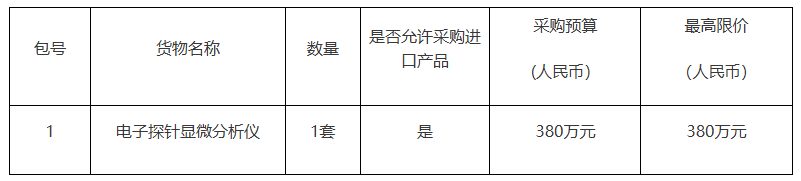 項目名稱:中國科學院深圳先進技術研究院電子探針顯微分析儀采購項目(第二次)