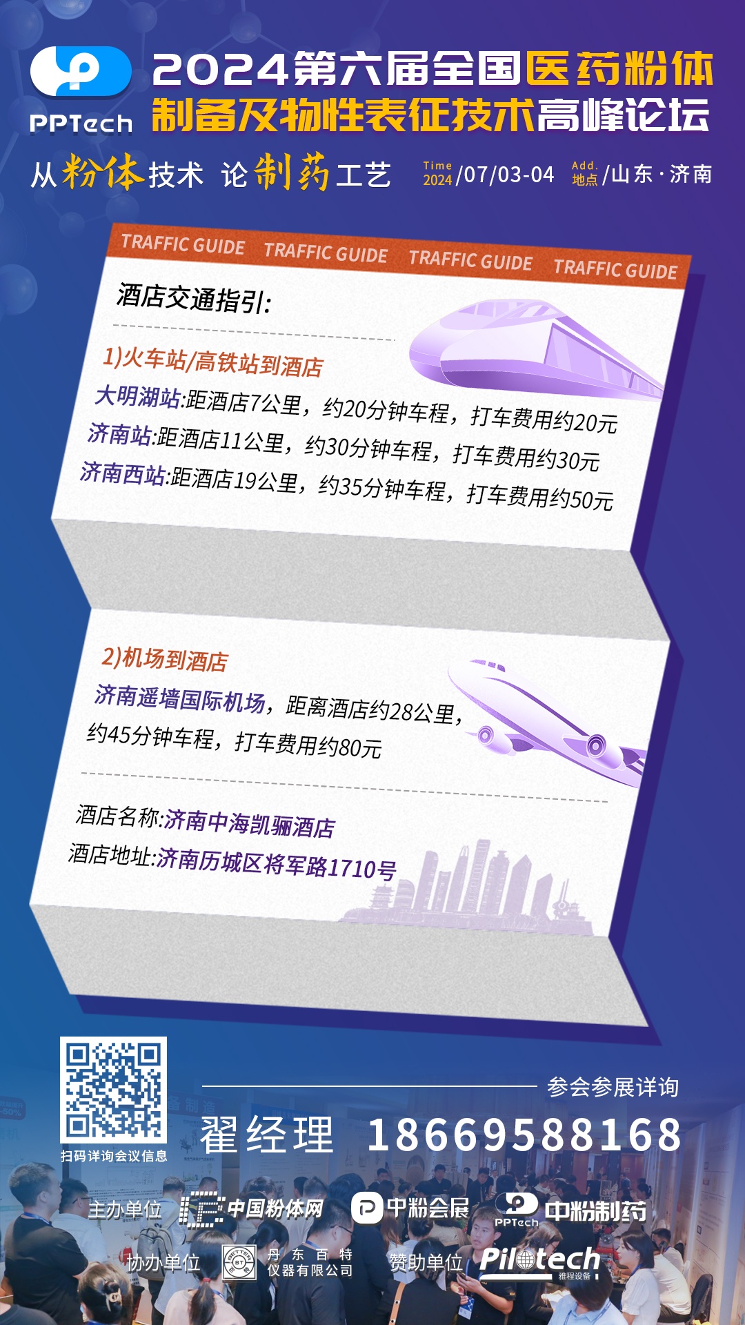第六屆全國醫藥粉體制備及物性表征高峰論壇將于2024年7月3-4日,在山東 濟南中海凱麗酒店舉辦,7月2號全天報到,會議日程及交通圖如下,請您安排好行程,按時參會。