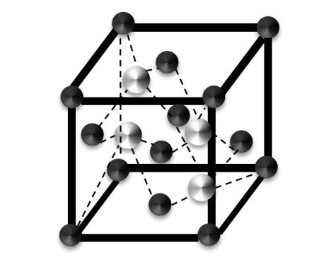 氮化硼是由B和N以SP3雜化形成的晶體,與金剛石結構相似,為閃鋅礦結構,屬于等軸晶系,空間群為F43m。化學組成為43.6%的B和56.4%的N,具有四種不同的變體。纖鋅礦結構的六方氮化硼(hBN)、菱方氮化硼(rBN)、立方氮化硼(cBN)和密集六方氮化硼(wBN),立方氮化硼結構圖如下圖所示,每一層都是相同的原子(B或N)緊密堆積而成,原子層以ABCABC……排列,晶格常數為a=0.3615nm±0.00001nm,與金剛石的晶格常數相近,N和B原子間距為0.157nm,密度為3.48g/cm3;在cBN晶格中,B-N的鍵長為0.157nm,B-N鍵的鍵角為109°5′。