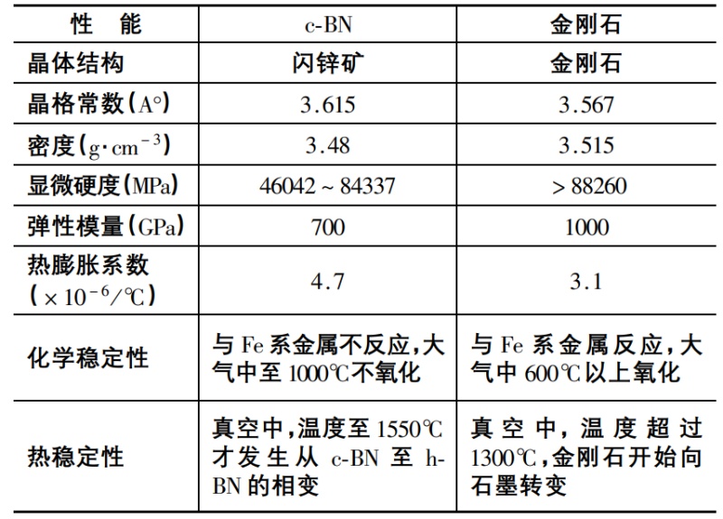 一方面,由于金剛石的熱穩定性較差,在大氣中達到600°C時就發生氧化,在真空中達到1300℃~1400℃就會轉變為石墨,而cBN的熱穩定性要優于金剛石,主要是由于在空氣或者O2氣氛中,cBN與O2反應生成的B2O3阻止cBN的進一步氧化。此外,真空中立方cBN轉化為hBN的臨界溫度為1773K-1873K,而在5-6GPa的強脈沖加熱條件下,轉變為六方結構的臨界溫度為3400-3500K,因此cBN一般不會轉變為hBN。
