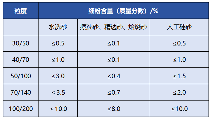 鑄造用硅砂各粒度組成的細(xì)粉含量