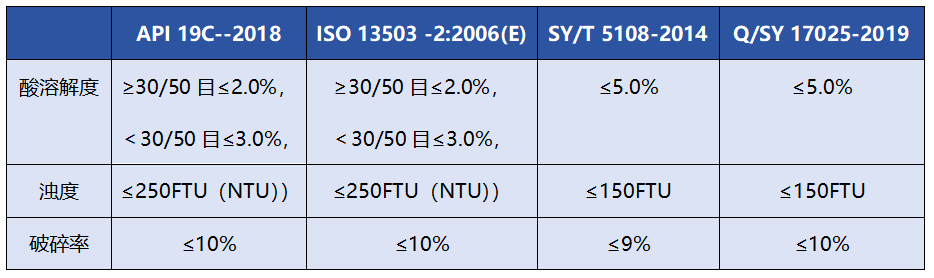 石英砂支撐劑各指標(biāo)不同標(biāo)準(zhǔn)結(jié)果評(píng)定對(duì)比