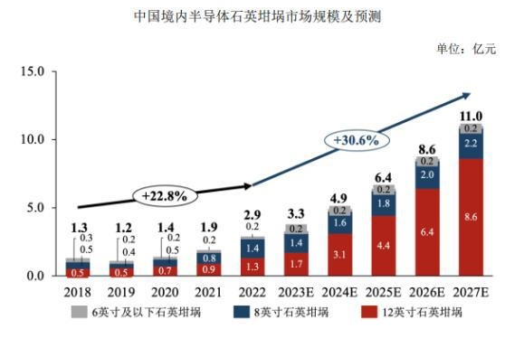 石英坩堝是半導體硅片生產中重要的輔料,隨著國內半導體產業的發展,半導體級石英坩堝市場需求持續攀升。