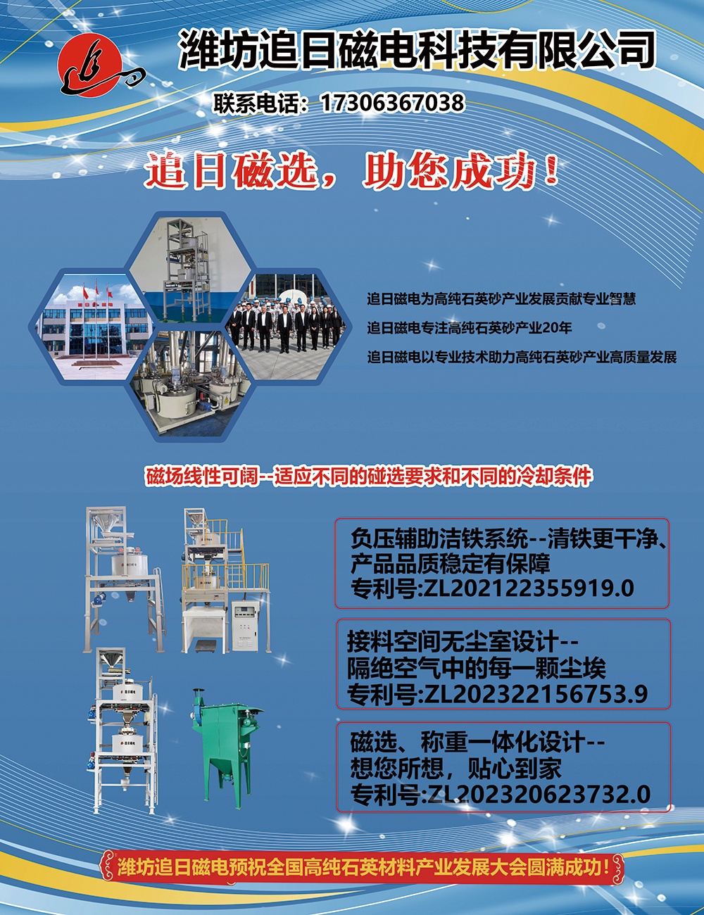 中國(guó)粉體網(wǎng)于將于2024年8月9日在江蘇省鹽城市舉辦“ 2024(第二屆)全國(guó)集成電路及光伏用高純石英材料產(chǎn)業(yè)發(fā)展大會(huì) ”,濰坊追日磁電科技有限公司邀您一同參加。
