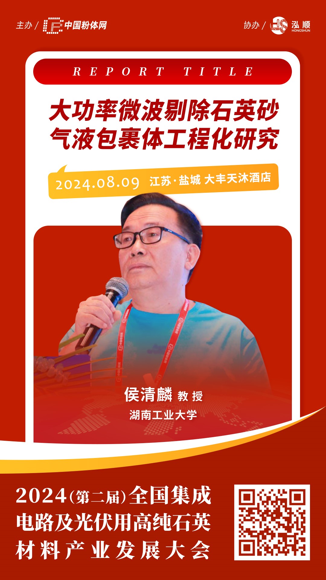2024年8月9日,中國粉體網(wǎng)將在江蘇鹽城大豐天沐酒店舉辦“2024(第二屆)全國集成電路及光伏用高純石英材料產(chǎn)業(yè)發(fā)展大會”,屆時,來自湖南工業(yè)大學(xué)的侯清麟教授將作《大功率微波剔除石英砂氣液包裹體工程化研究》報告,詳細(xì)講述微波技術(shù)剔除石英砂氣液包裹體。