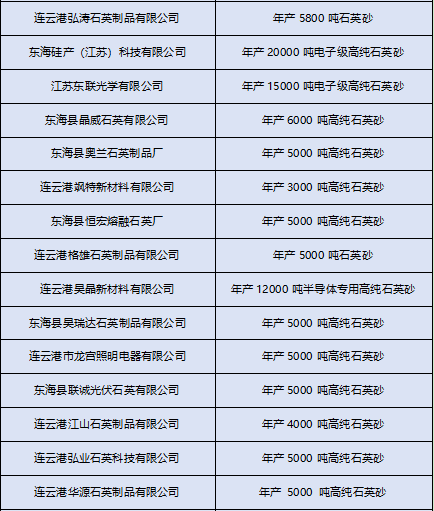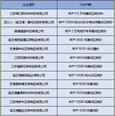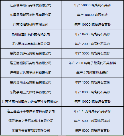 四九八(連云港)高純石英砂有限公司:投資6406萬元,建設年產10000噸光伏及半導體用高純石英砂項目。