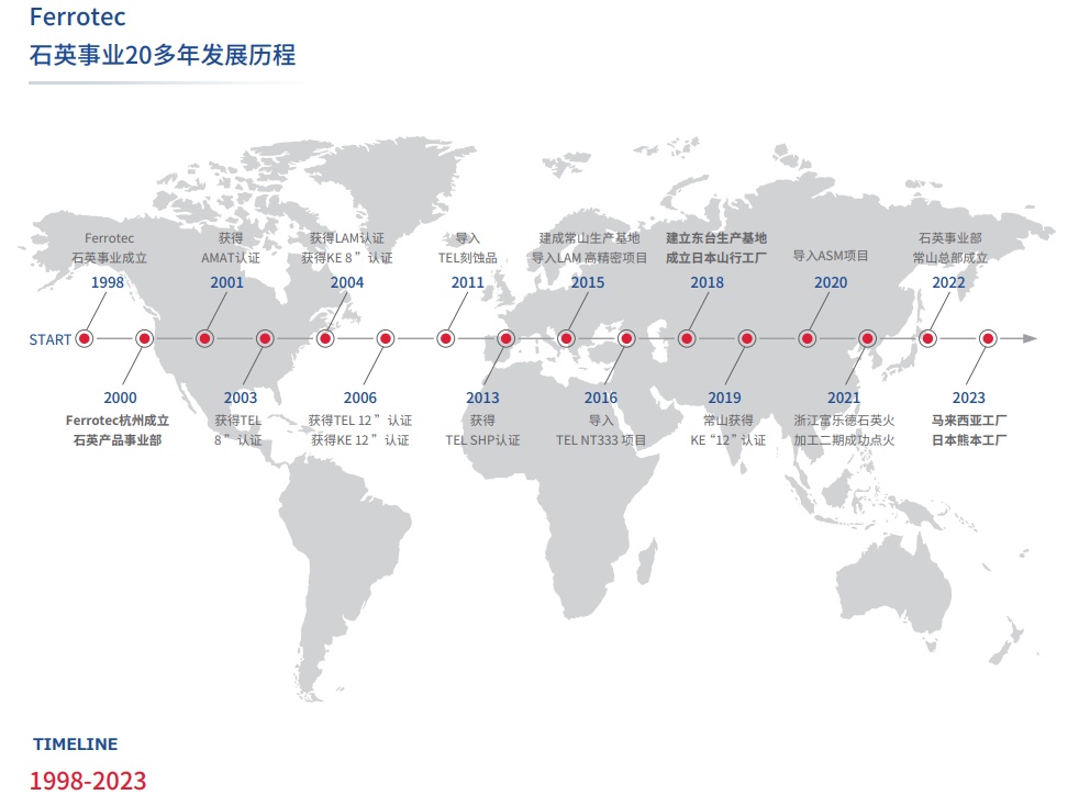 據(jù)悉,F(xiàn)erroTec(中國(guó))在精密石英這一領(lǐng)域擁有精密加工中心、激光切割、水切割、LAP/POLISH等各類(lèi)型先進(jìn)生產(chǎn)設(shè)備,擁有10000級(jí)凈空化學(xué)洗凈及100級(jí)純水洗凈室。歷經(jīng)20余年的研發(fā)生產(chǎn),F(xiàn)errotec可批量生產(chǎn)12"、8"以及8"以下半導(dǎo)體裝置用石英制品,并具備下一代18"石英產(chǎn)品的研發(fā)能力。