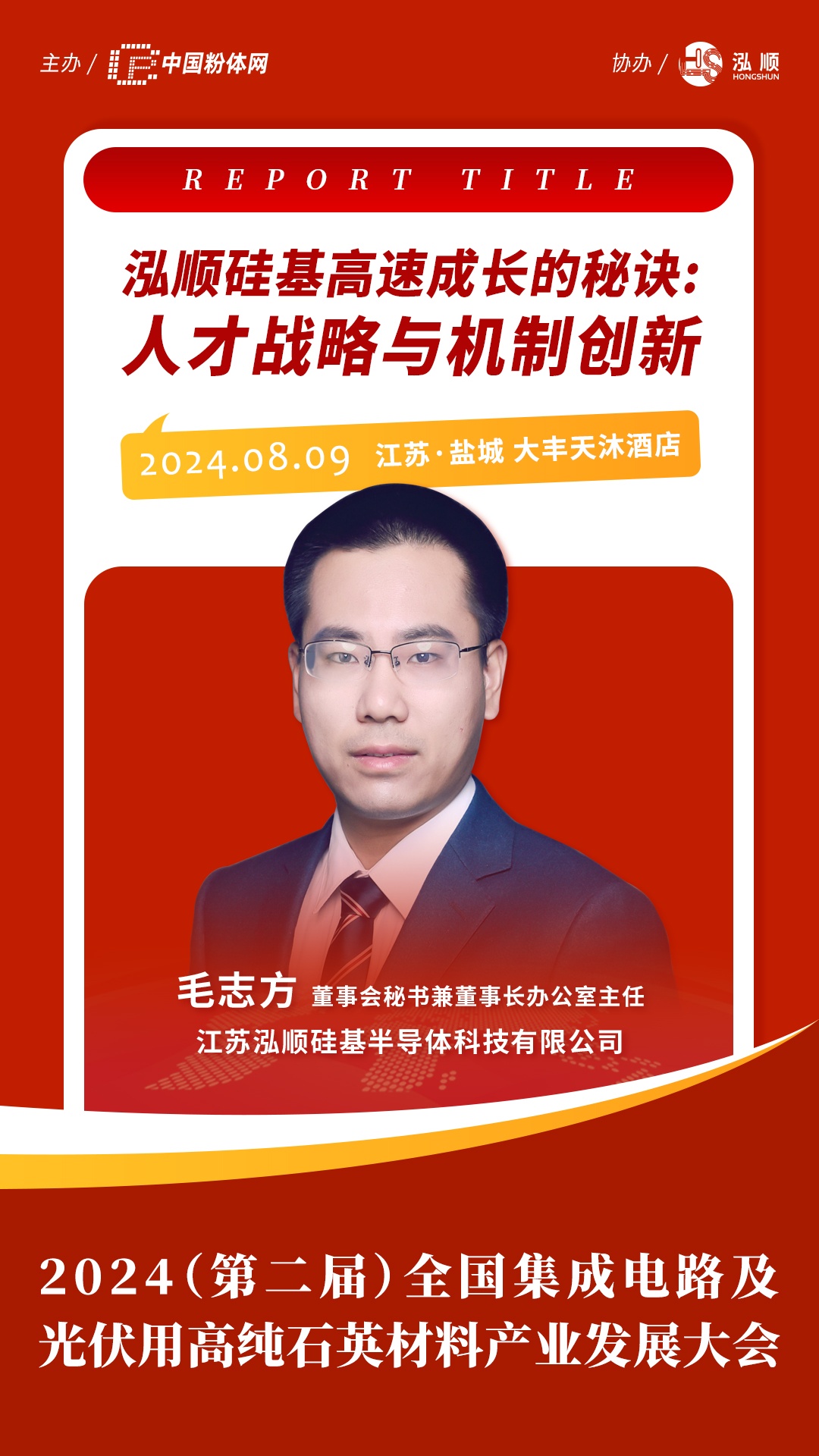 中國粉體網于將于2024年8月9日在江蘇省鹽城市舉辦“ 2024(第二屆)全國集成電路及光伏用高純石英材料產業發展大會 ”,江蘇泓順硅基半導體科技有限公司邀您一同參加。