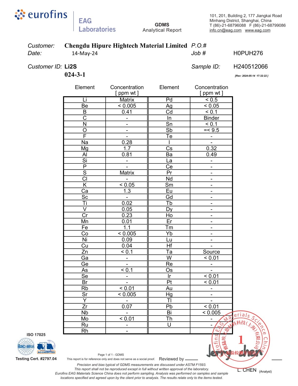 Impurity analysis of high purity lithium sulfide(ICP--OES)