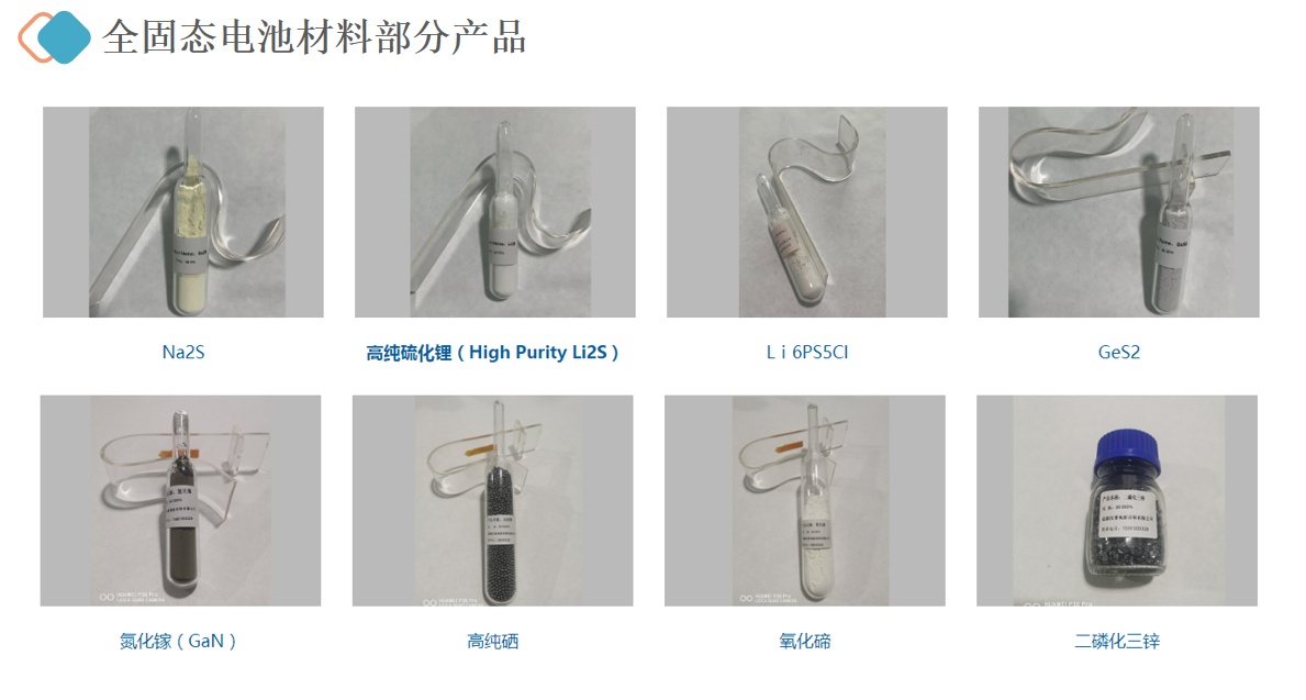 固態電解質材料高純硫化鋰純度高99.99%以上、二硫化鍺、二硫化錫、五硫化二磷、無水硫化鈉等材料已產業化生產,目前,我公司高純硫化鋰產能可達50噸,我們可根據市場情況,隨時擴大產能,滿足國內外需求。我們可根據客戶的要求,定制各種不同原子比的多元化合物材料。