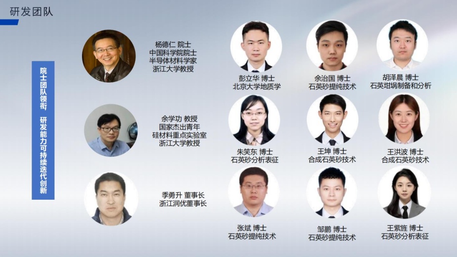 公司與浙江大學楊德仁院士團隊聯合組建了石英材料研究院,定位是國內頂尖的高純石英材料研究機構。目前公司的研發團隊有近30位博士和博士后,科研與產業的緊密結合,將為我國光伏、半導體、集成電路等行業的發展突破關鍵瓶頸。