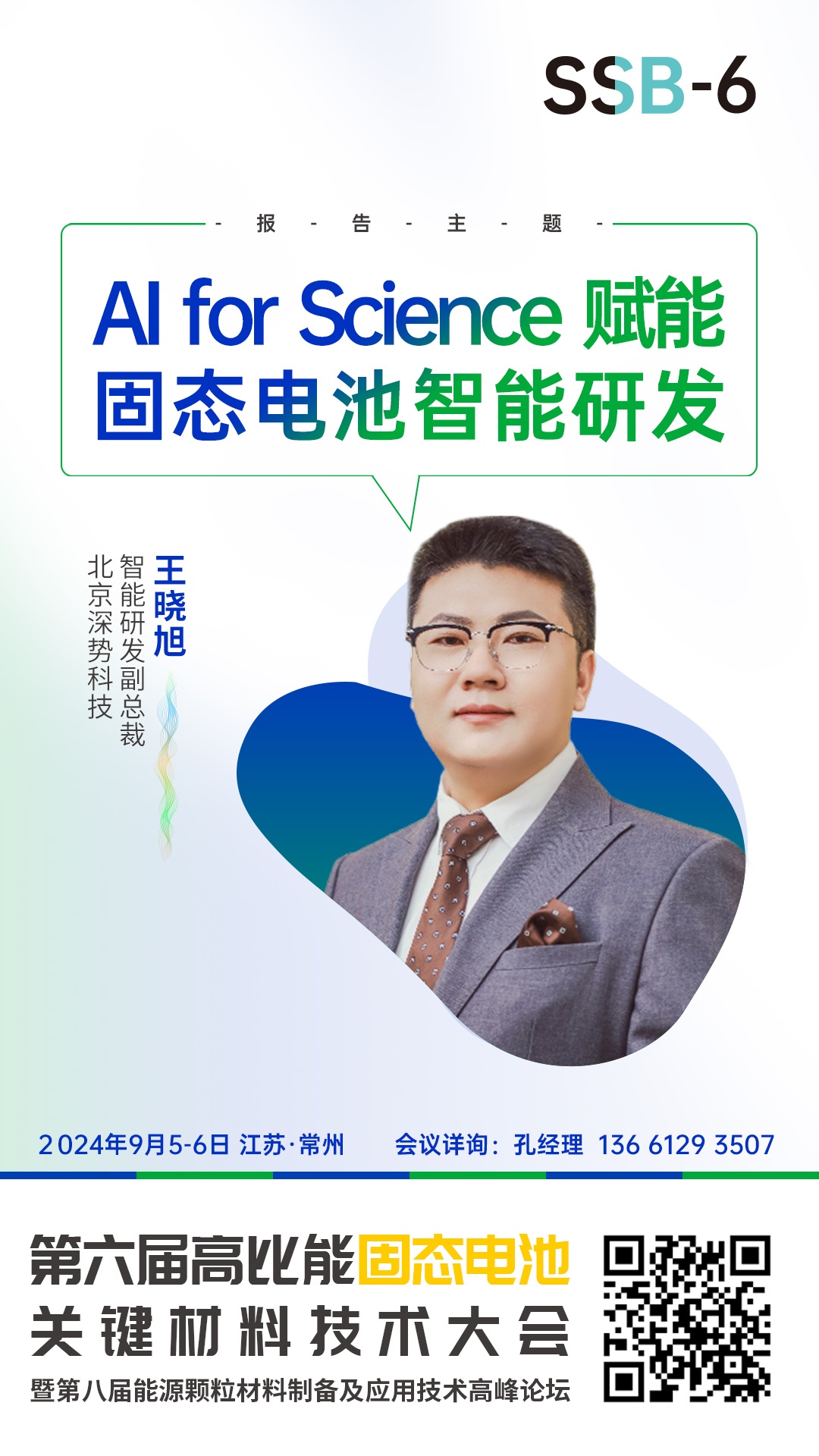 針對固態(tài)電池相關的技術、材料、市場及產(chǎn)業(yè)等方面的問題,中國粉體網(wǎng)將于2024年9月5-6日在常州舉辦第六屆高比能固態(tài)電池關鍵材料技術大會。為致力于固態(tài)電池技術開發(fā)的企業(yè),科研院校,以及電動車、儲能、特種應用等終端企業(yè)提供信息交流的平臺,開展產(chǎn)、學、研合作,共同推動行業(yè)發(fā)展。屆時,深勢科技/北京科學智能研究院智能研發(fā)副總裁王曉旭將作題為《AI for Science 賦能固態(tài)電池智能研發(fā)》的報告,報告將詳細介紹深勢科技固態(tài)電池智能研發(fā)的成果與應用。