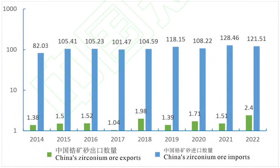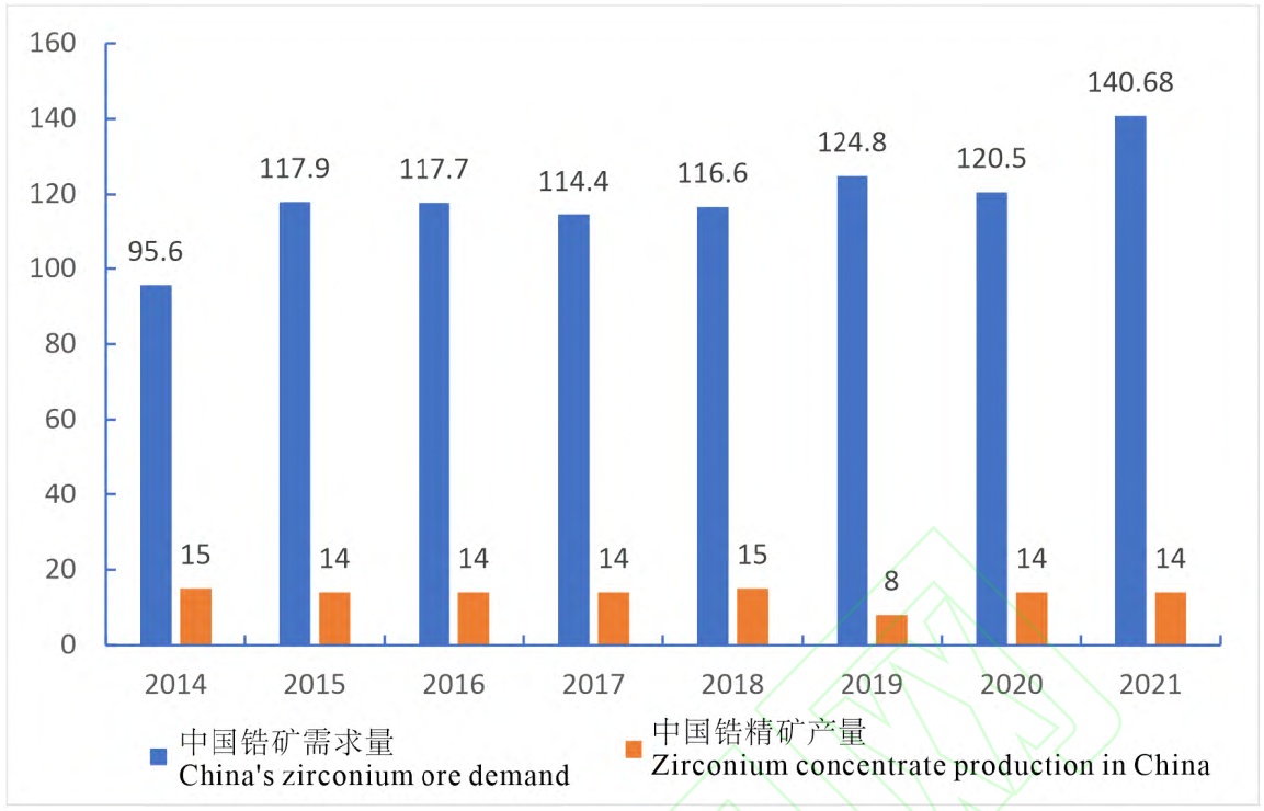 中國每年鋯精礦需求量約在120萬噸,但中國每年鋯精礦產量僅有14萬噸,鋯礦對外依賴程度在90%以上。