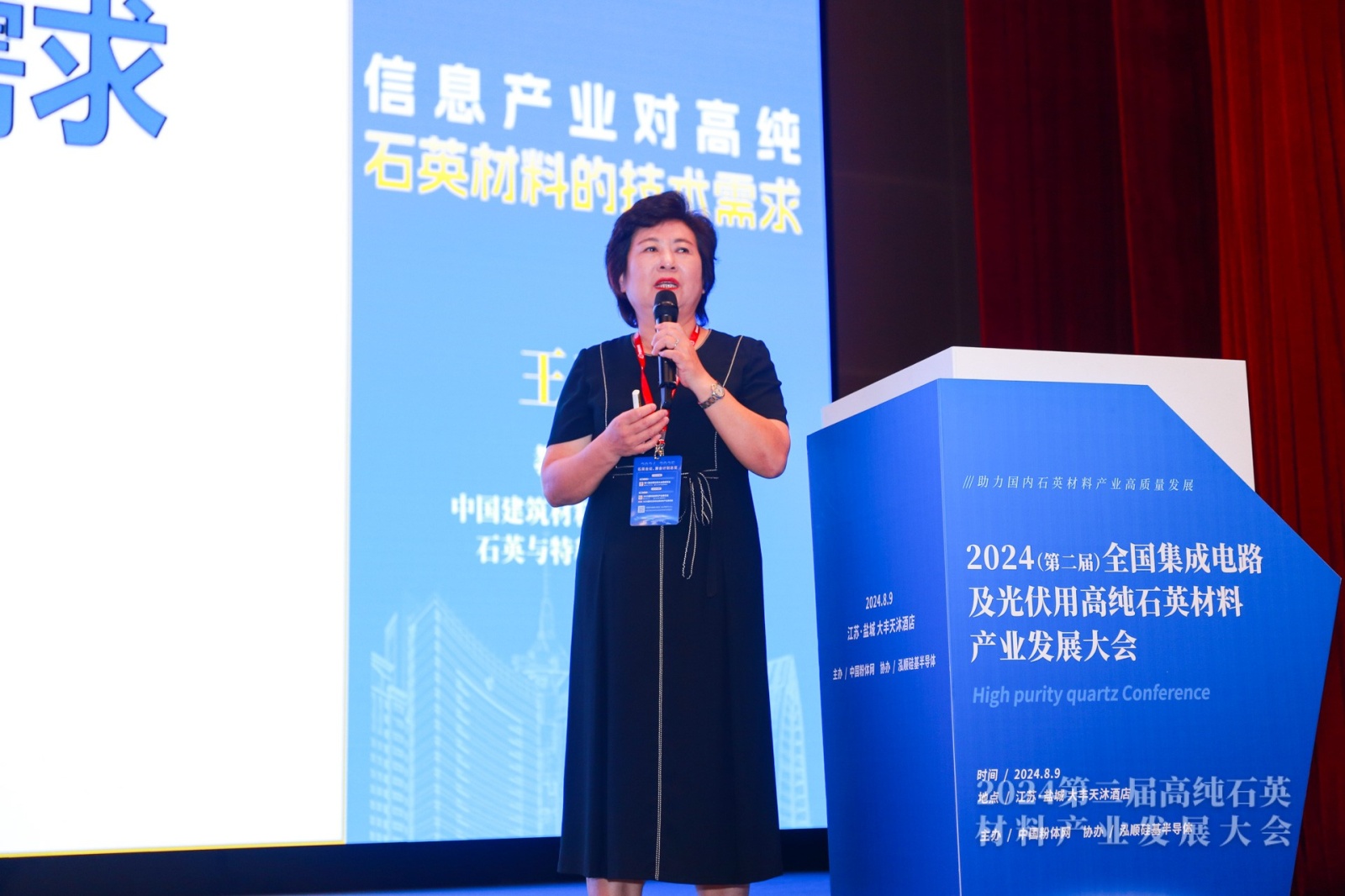 中國建筑材料科學研究總院石英與特種玻璃研究院教授級高工王玉芬作《信息產業對高純石英材料的技術需求》報告