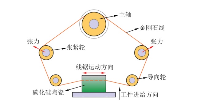 用金剛石線繩鋸機切割碳化硅陶瓷示意圖