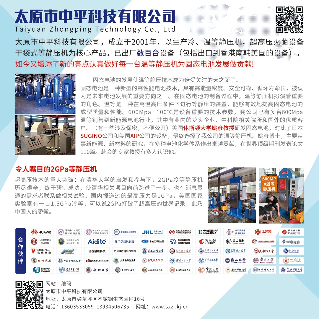 從第六屆高比能固態電池關鍵材料技術大會組委會獲悉,本屆會議將于2024年9月5-6日在常州舉辦。太原市中平科技有限公司將出席本次大會,現場交流前沿技術、市場。
