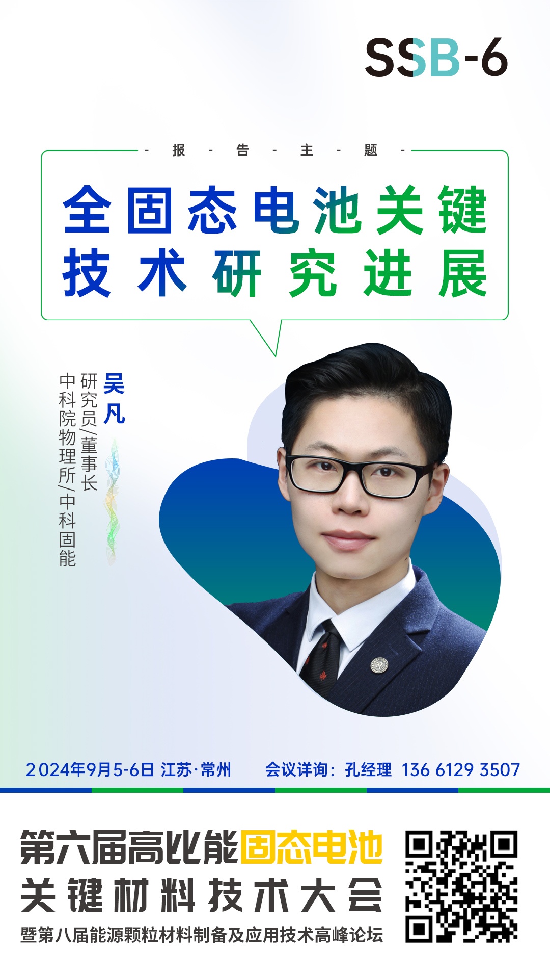 針對固態(tài)電池相關(guān)的技術(shù)、材料、市場及產(chǎn)業(yè)等方面的問題,中國粉體網(wǎng)將于2024年9月5-6日在常州舉辦第六屆高比能固態(tài)電池關(guān)鍵材料技術(shù)大會。為致力于固態(tài)電池技術(shù)開發(fā)的企業(yè),科研院校,以及電動車、儲能、特種應(yīng)用等終端企業(yè)提供信息交流的平臺,開展產(chǎn)、學(xué)、研合作,共同推動行業(yè)發(fā)展。屆時,中科院物理所研究員、中科固能董事長吳凡將作題為《全固態(tài)電池關(guān)鍵技術(shù)研究進展》的報告,報告將介紹其團隊在硫化物固態(tài)電池領(lǐng)域的研究成果及進展。