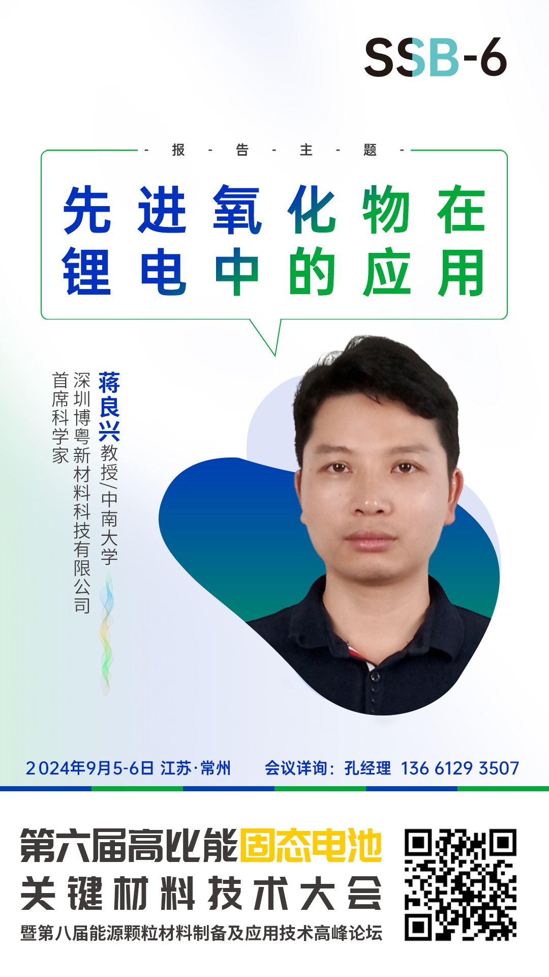 針對固態電池相關的技術、材料、市場及產業等方面的問題,中國粉體網將于2024年9月5-6日在常州舉辦第六屆高比能固態電池關鍵材料技術大會。為致力于固態電池技術開發的企業,科研院校,以及電動車、儲能、特種應用等終端企業提供信息交流的平臺,開展產、學、研合作,共同推動行業發展。屆時,來自中南大學/深圳博粵新材料科技有限公司的蔣良興教授將作題為《先進氧化物在鋰電中的應用》的報告。