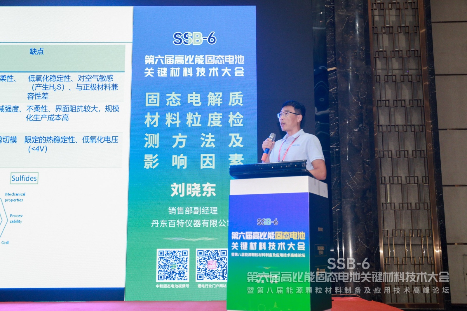 丹東百特儀器有限公司銷售部副經理劉曉東作《固態電解質粒度檢測方法及影響因素》報告