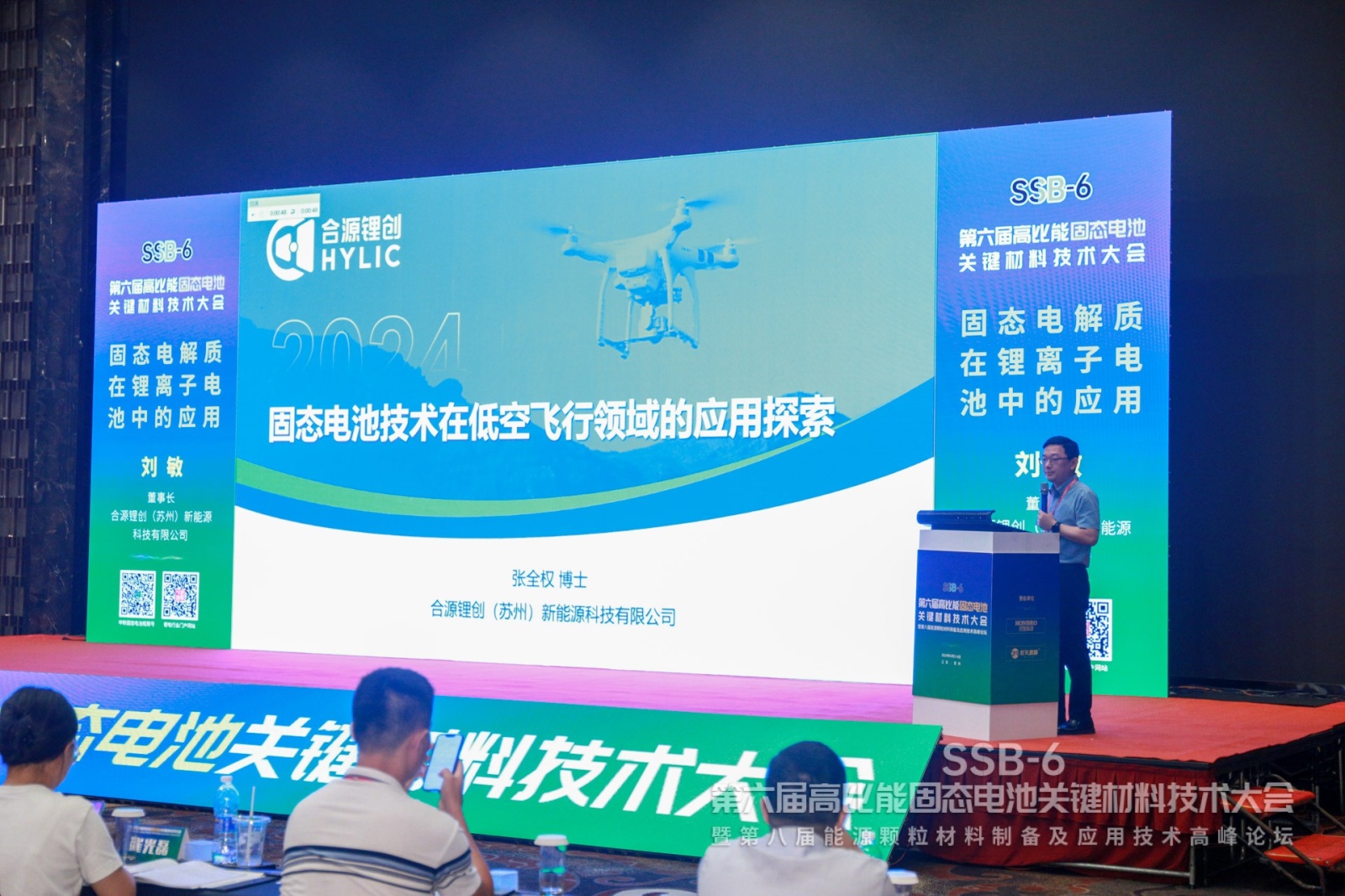 合源鋰創(蘇州)新能源科技有限公司董事長劉敏(張全權博士代)作《固態電池技術在低空飛行領域的應用探索》報告