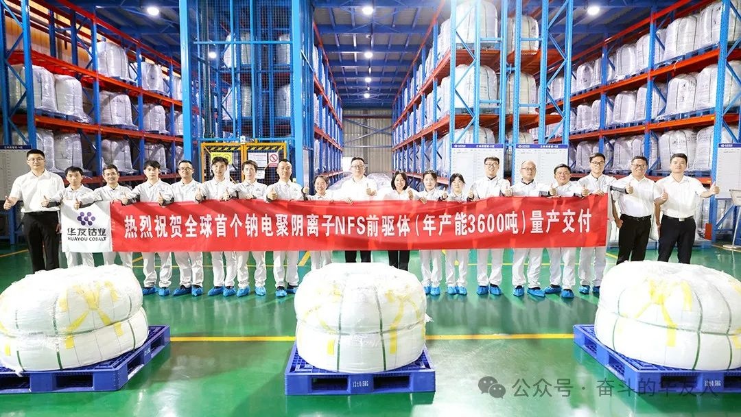 8月28日,華友新材料全球首款鈉電聚陰離子NFS前驅體(年產能3600噸)量產品順利下線交付。