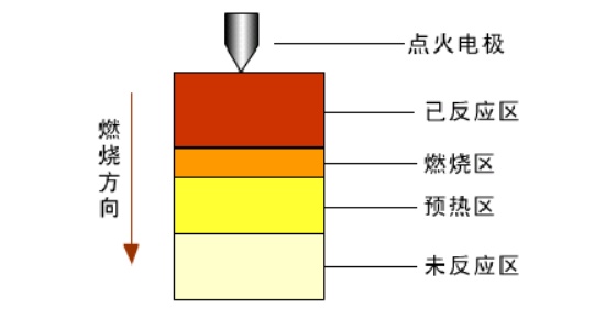 自蔓延的合成過程不易控制,燃燒引發(fā)的反應(yīng)或燃燒波的蔓延相當(dāng)快,一般為0.1~20.0cm/s,最高可達(dá)25.0cm/s,燃燒波溫度或反應(yīng)溫度通常在2100~3500K以上,最高可達(dá)5000K。與傳統(tǒng)制備工藝比較,自蔓延法工藝過程減少,流程縮短,工藝簡單,無需消耗額外能量。由于燃燒波通過試樣時產(chǎn)生的高溫,可將易揮發(fā)雜質(zhì)排除,使產(chǎn)品純度提高。同時燃燒過程中有較大的熱梯度和較快的冷凝速度,有可能形成復(fù)雜相,易于從一些原料轉(zhuǎn)變?yōu)榱硪环N產(chǎn)品。