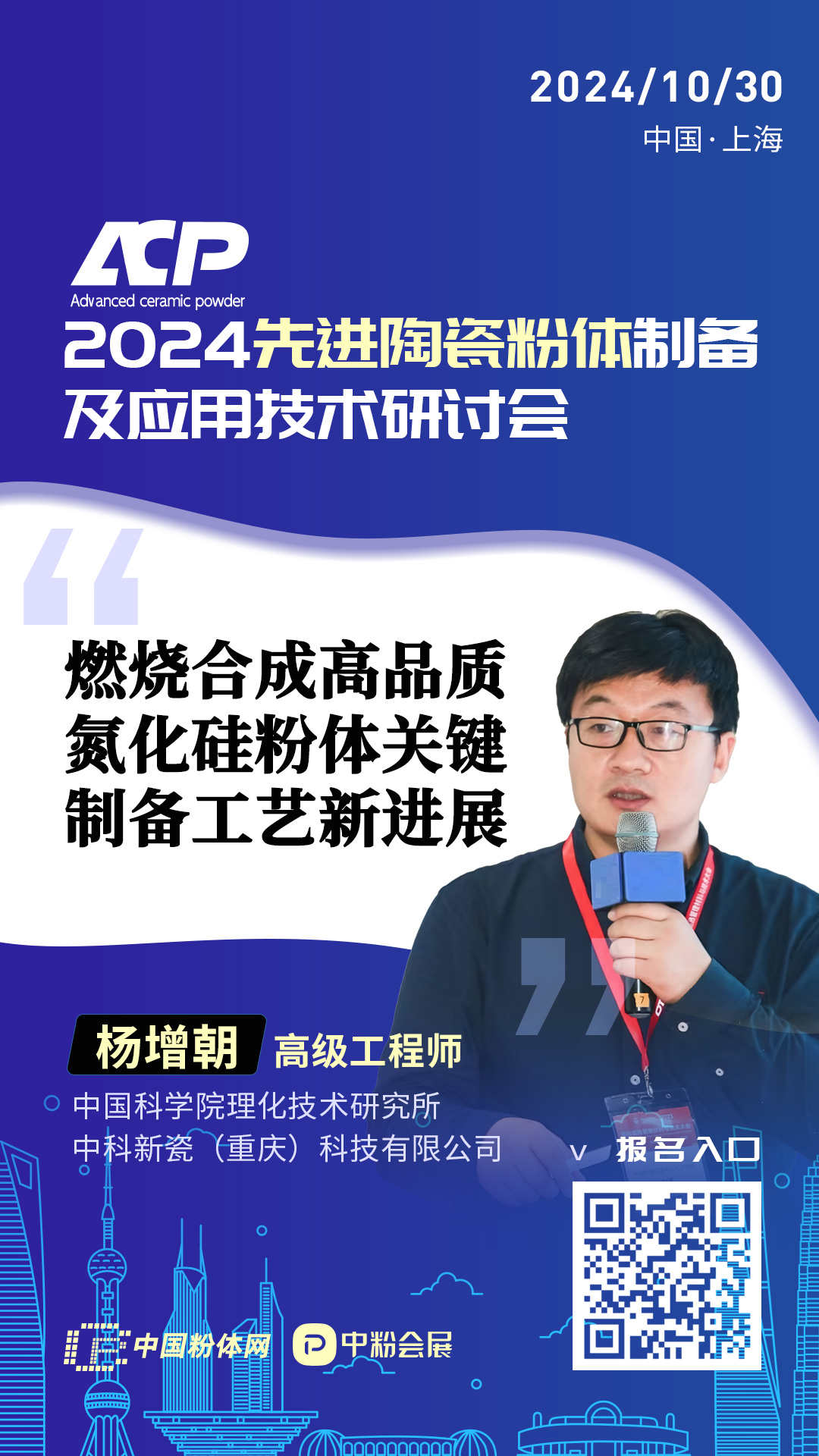 2024年10月29-31日在上海跨國采購會展中心,由北京粉體技術(shù)協(xié)會與柏德英思展覽(上海)有限公司聯(lián)合主辦“2024先進(jìn)陶瓷粉體制備及應(yīng)用技術(shù)研討會”,中國科學(xué)院理化技術(shù)研究所/中科新瓷(重慶)科技有限公司高級工程師楊增朝將帶來《燃燒合成高品質(zhì)氮化硅粉體關(guān)鍵制備工藝新進(jìn)展》的報告。將帶您了解氮化硅陶瓷燃燒合成中試及產(chǎn)業(yè)化技術(shù)進(jìn)展以及在氮化硅陶瓷粉體制備工藝創(chuàng)新及一致性評價方面的工作進(jìn)展。