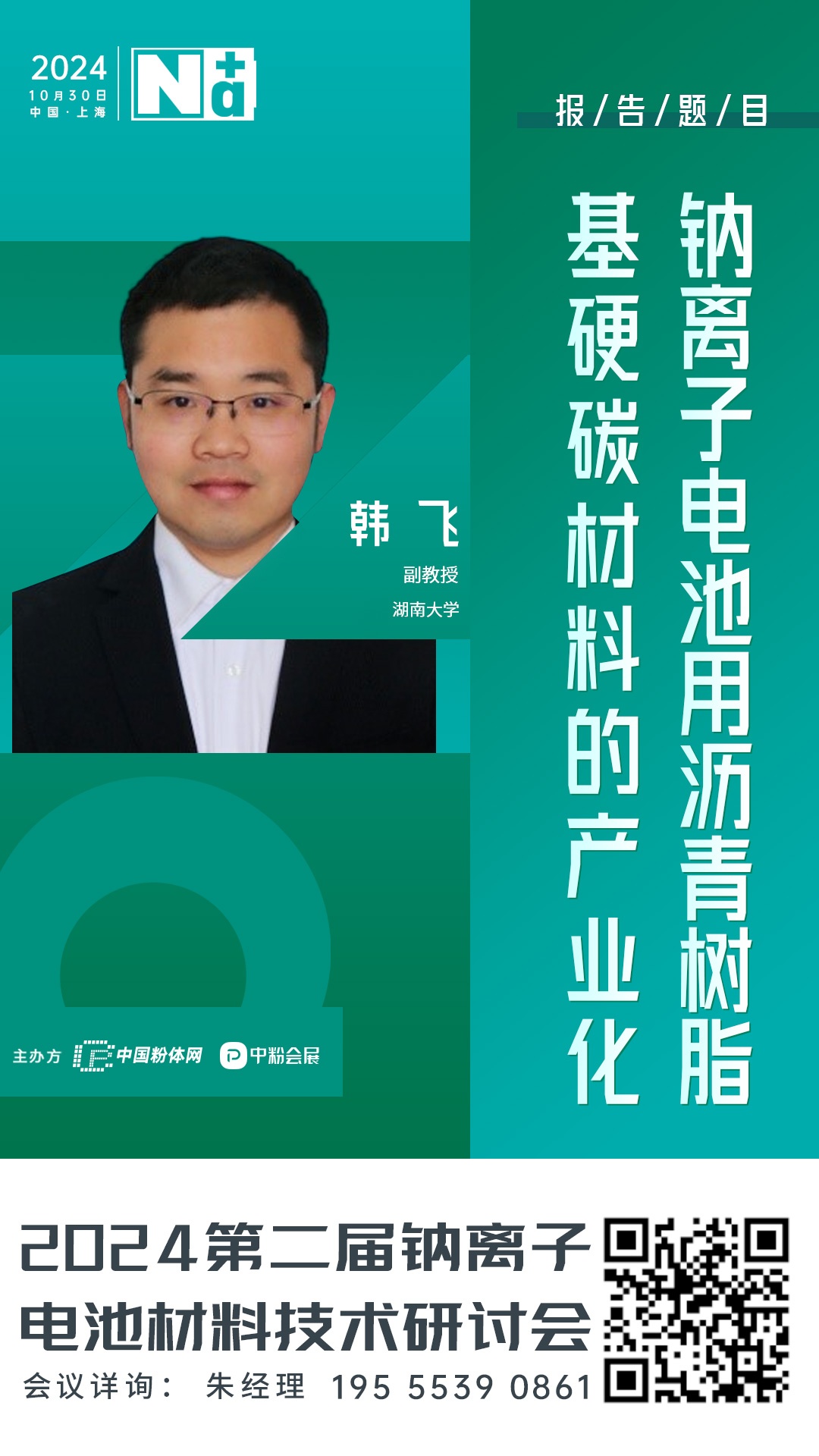 2024年10月29-31日在上海跨國采購會展中心,由北京粉體技術(shù)協(xié)會與柏德英思展覽(上海)有限公司聯(lián)合主辦2024第二屆鈉離子電池材料技術(shù)研討會。屆時,來自湖南大學(xué)的韓飛副教授將作題為《鈉離子電池用瀝青樹脂基硬碳材料的產(chǎn)業(yè)化》的報告。