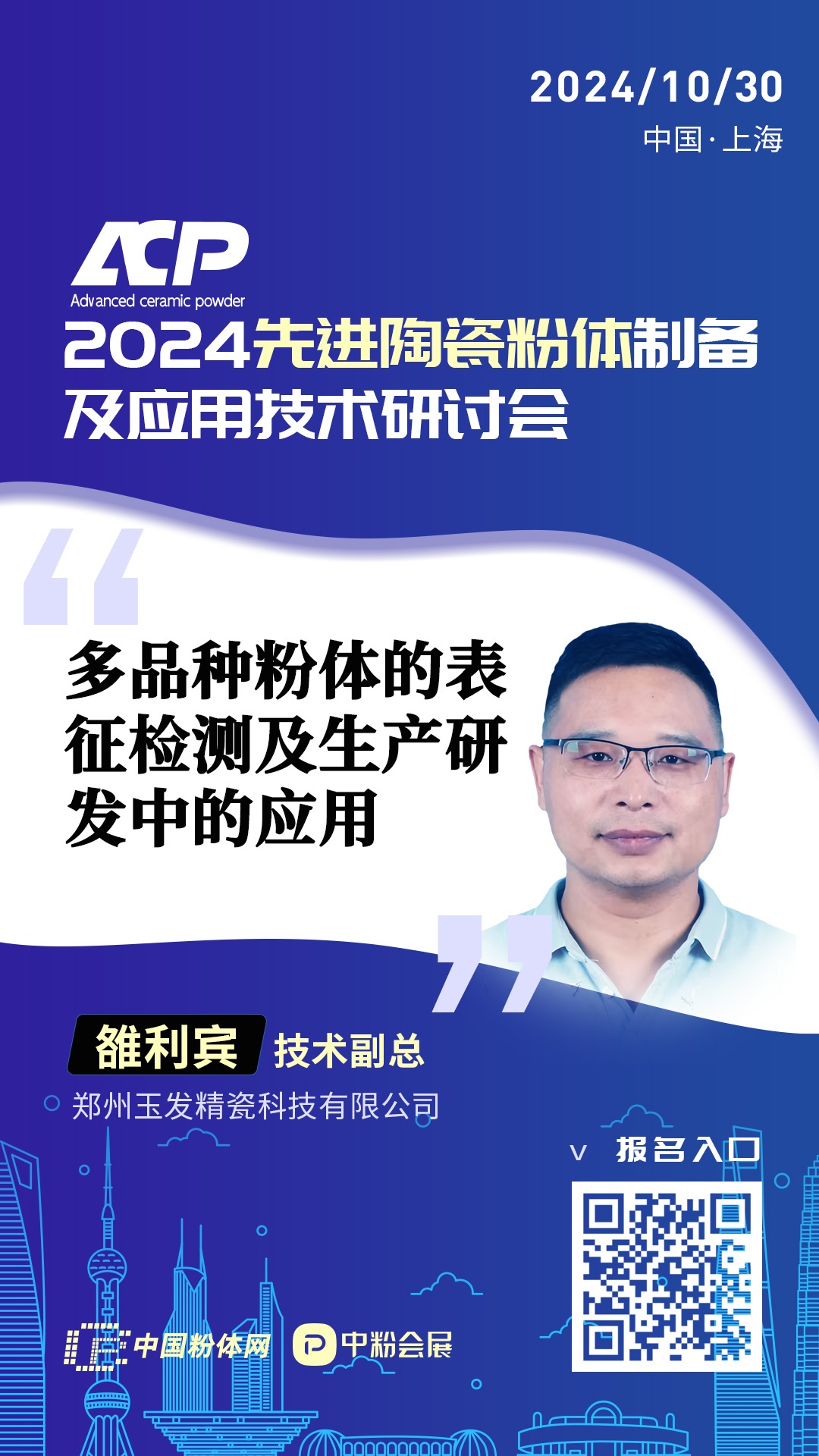 不同工藝、設備生產出的產品物理化學性能也有所不同,各種性能之間存在一定的關聯并相互影響,只有充分了解和掌握才能更好地生產和應用。2024年10月29-31日在上海跨國采購會展中心,由北京粉體技術協會與柏德英思展覽(上海)有限公司聯合主辦“2024先進陶瓷粉體制備及應用技術研討會”,鄭州玉發精瓷科技有限公司技術副總雒利賓將帶來題為《多品種粉體的表征檢測及生產研發中的應用》的報告,為您講述粉體表征檢測在粉體研發過程中的重要性。