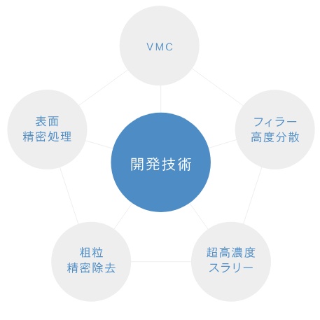 除了VMC方法,雅都瑪在表面精密處理技術、粗顆粒精密去除技術、超高濃度分散化技術等方面都有一套屬于自己的秘笈。它提出適用于各種樹脂系統的處理劑,提高了粉體與樹脂的相容性,降低了樹脂粘度;提供粗顆粒去除產品,保證各粒子尺寸水平,以滿足薄膜、漿料和粘合劑等應用的需要;將難以分散的Admafine粉體顆粒均勻地分散到各種溶劑中,讓客戶不再需要分散過程,只需與各種樹脂混合即可實現分散。