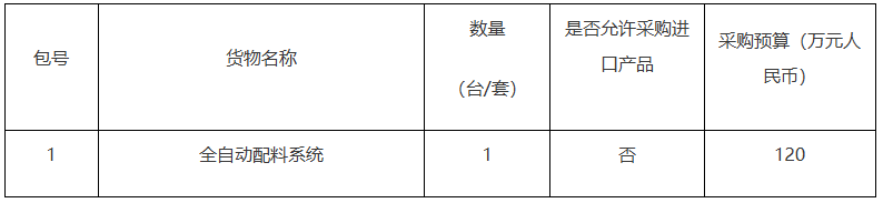 項目名稱:中國科學院理化技術研究所全自動配料系統采購項目