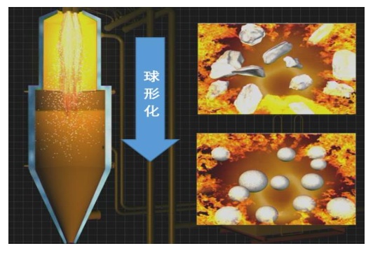 日本電化學株式會社主要采用火焰熔融法生產球形硅微粉,公司的電化熔融硅石(DF)球狀(FB·FBX)產品是將粉碎的原料硅石在高溫的火焰中熔融,利用表面張力而球狀化的熔融硅石。