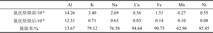 石英砂氯化焙燒前后雜質(zhì)質(zhì)量分?jǐn)?shù)
