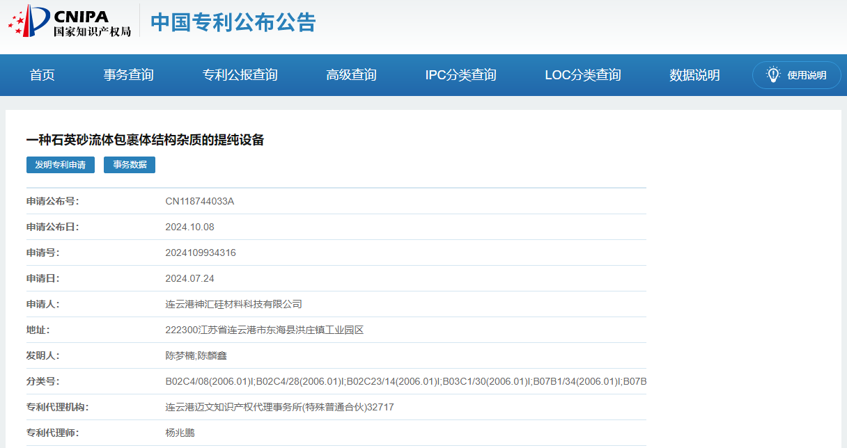 日前,從國家知識產權局獲悉,連云港神匯硅材料科技有限公司公開一種石英砂流體包裹體結構雜質的提純設備。