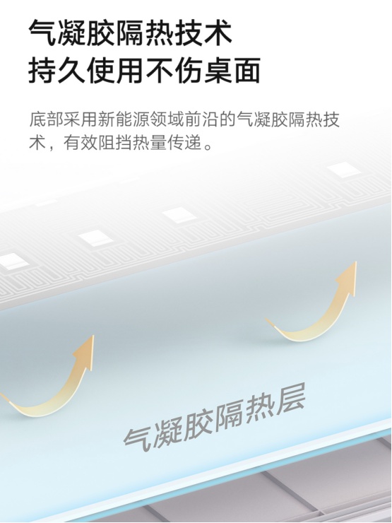 家庭聚餐等場景下,很多菜品需要進行長時間的保溫,米家折疊暖菜板采用氣凝膠隔熱技術,能夠有效的阻止加熱區域的熱量傳遞到桌面,即使長久保溫也不必燙傷桌面。