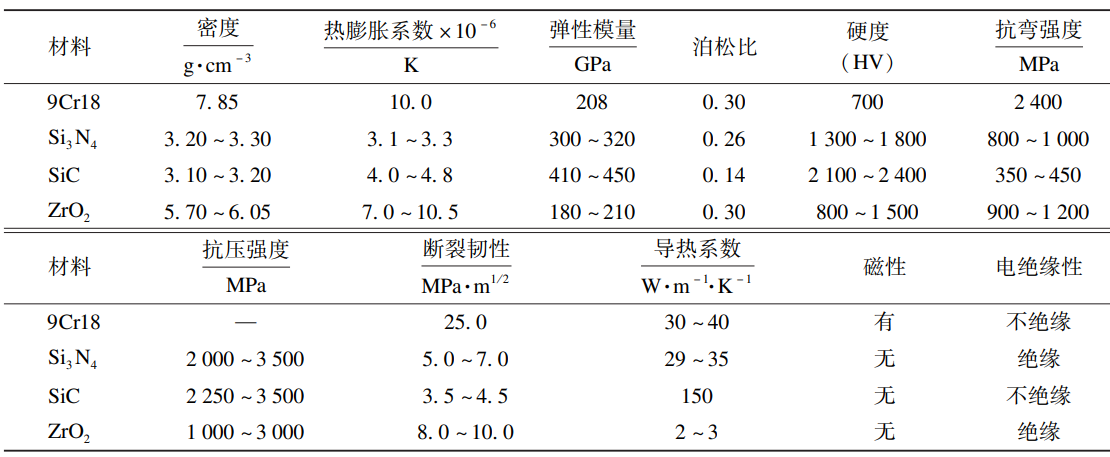 大量試驗研究表明,工程陶瓷材料(氮化硅、碳化硅、氧化鋯、氧化鋁等)具有作為軸承基礎材料的優良特性。其中,氮化硅是目前被認為最適合用來制造高性能滾動軸承的陶瓷材料。
